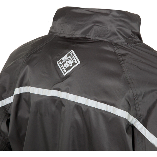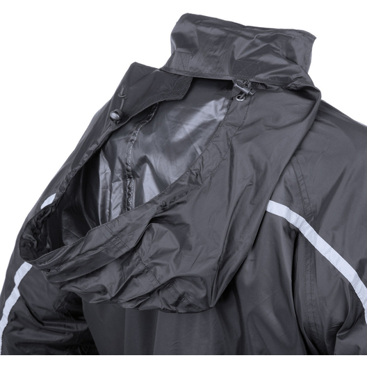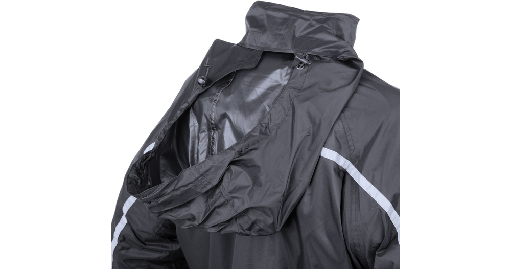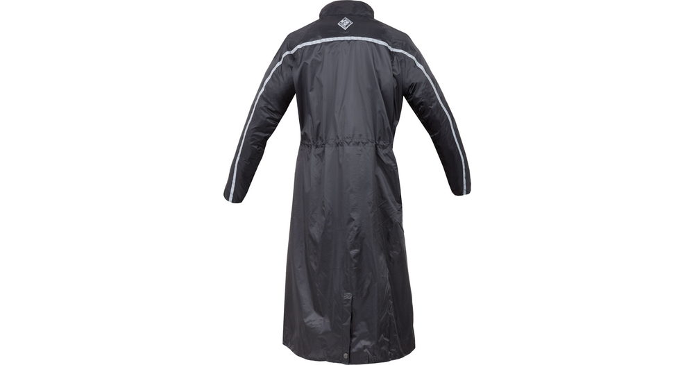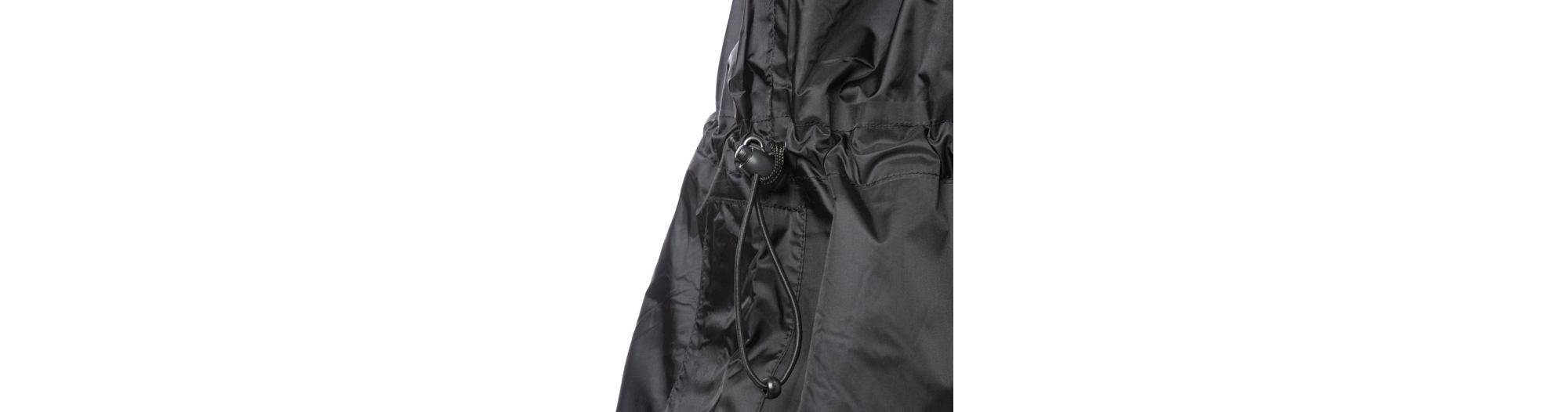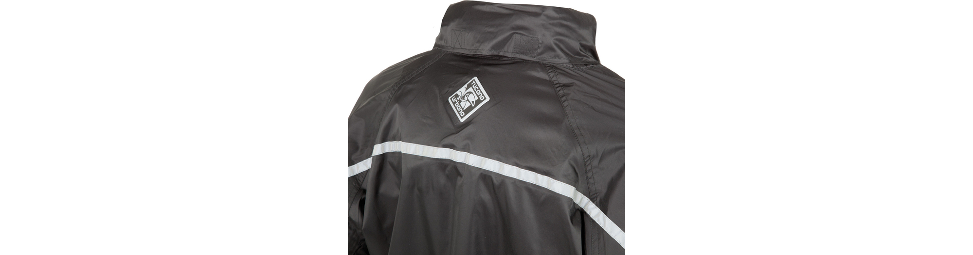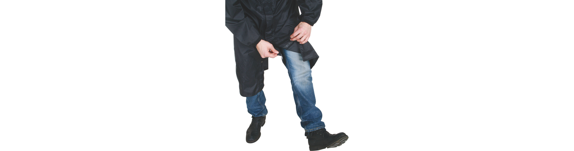 Veste longue pour la pluie Polyamide enduit polyuréthane pour une bonne imperméabilité Coutures soudées Bandes réfléchissantes Capuche à dimension variable repliée dans le col Ouverture…