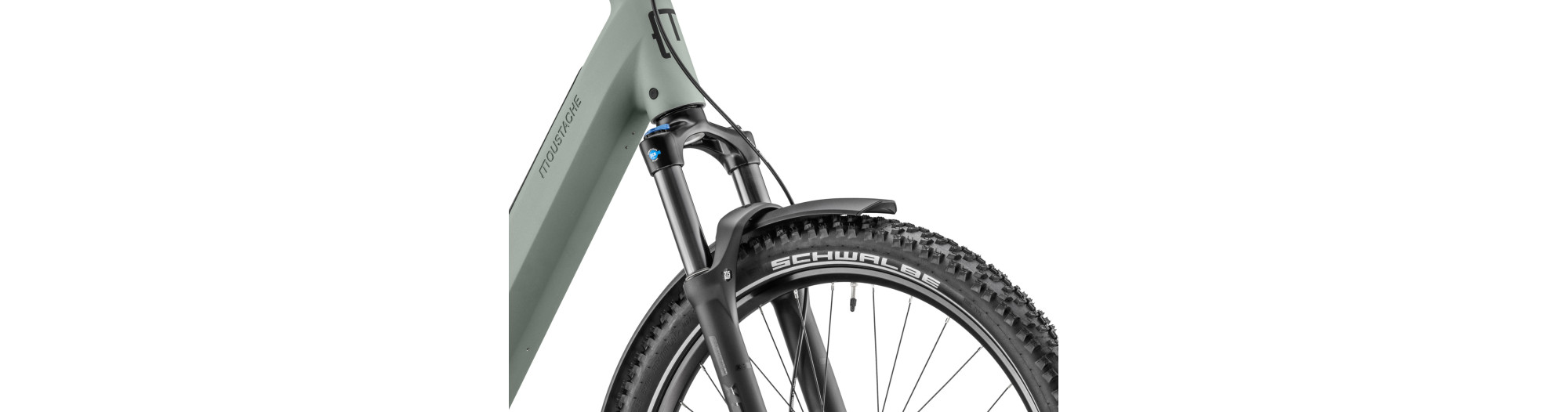 Xroad 4 FS, c'est un cadre tout suspendu composé de seulement 2 parties qui s’articulent autour d’un axe central. Associé à l’amortisseur Moustache Magic Grip Control à l’arrière et une fourche performante à l’avant, il efface les obstacles, il absorbe pavés, racines et chemins cabossés, procurant ainsi une tenue de route ultime pour transformer chaque sortie en pur plaisir, pour rouler l’esprit léger, partout et sans limites!