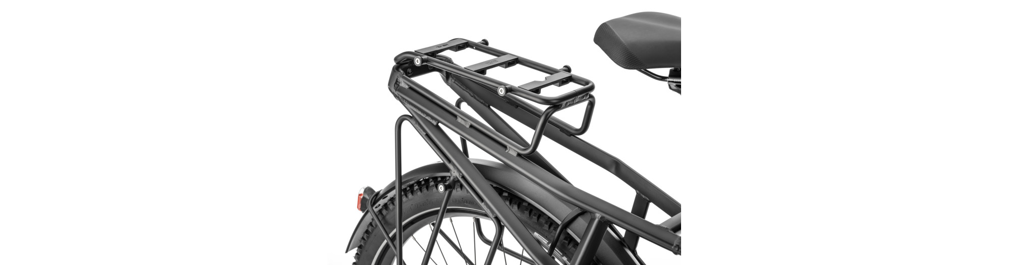 Toujours équipé de nos garde-boue tubulaires exclusifs, solides et stylés, parfaitement centrés sur la roue pour vous protéger par tous les temps et pour longtemps, Xroad 4 FS est également muni d’un carter de chaîne protecteur.Enfin, ses porte-bagages compatibles avec standards QL3 et/ou MIK HD, permettent la fixation en un clic de vos accessoires favoris. Rapide et facile!!!