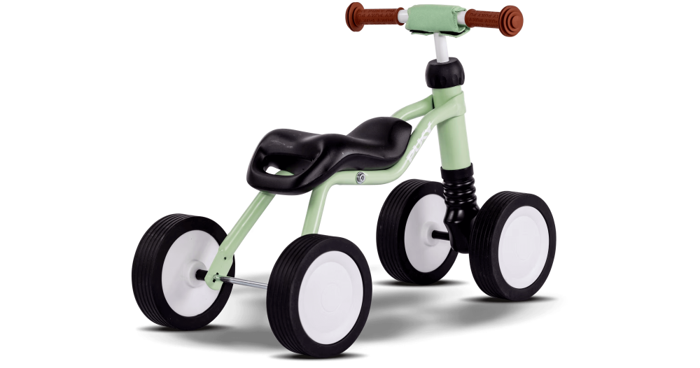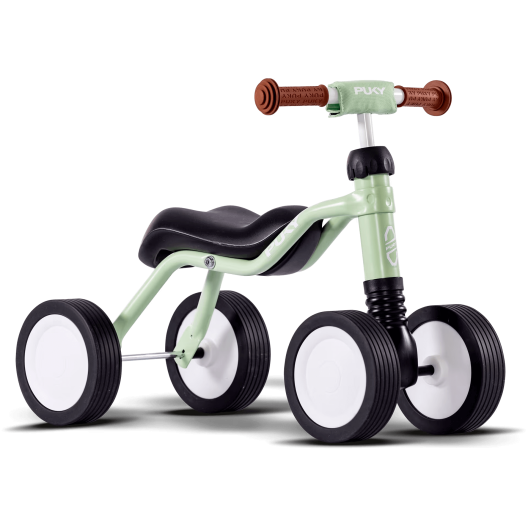 L'essieu avant oscillant du PUKY WUTSCH permet un angle de braquage plat et stabilise le véhicule en cas de petits obstacles. Les enfants à partir de 1 ½ an, qui savent déjà marcher avec assurance, ont ainsi la possibilité de se déplacer en toute sécurité sur des trajets plats sur le trottoir ou l'aire de jeux. Le PUKY WUTSCH favorise en même temps le développement du sens de l'équilibre grâce à son essieu avant oscillant et est ainsi le véhicule suivant logique du PUKYLINO.
