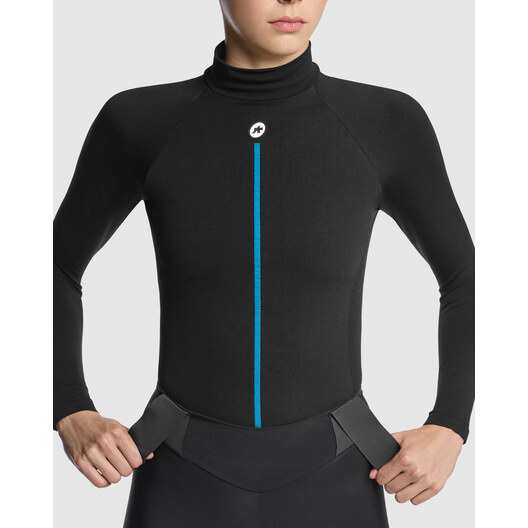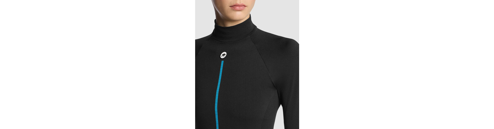 • La coupe seconde peau maintient le textile contre le corps, maximisant les propriétés thermorégulatrices et la gestion de l’humidité en l’évacuant pour un microclimat chaud et sec. La construction en une seule pièce élimine les coutures et les frottements.