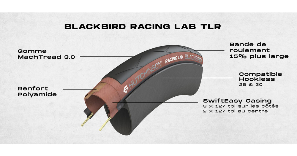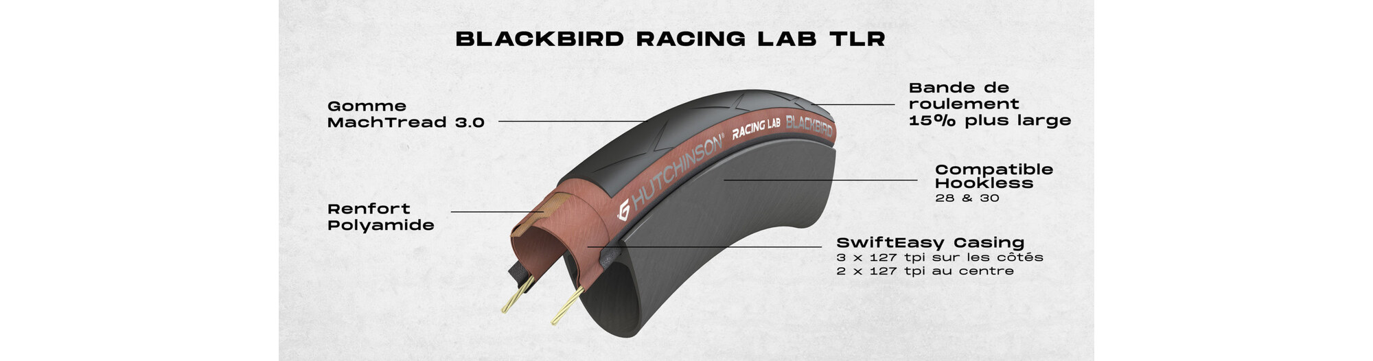 Avec le Blackbird Racing Lab, Hutchinson franchit un nouveau cap en matière de performance. Pensé pour la compétition sur route et gravel, ce pneu incarne le meilleur du savoir-faire de la marque : vitesse, efficacité et fiabilité, sans compromis.