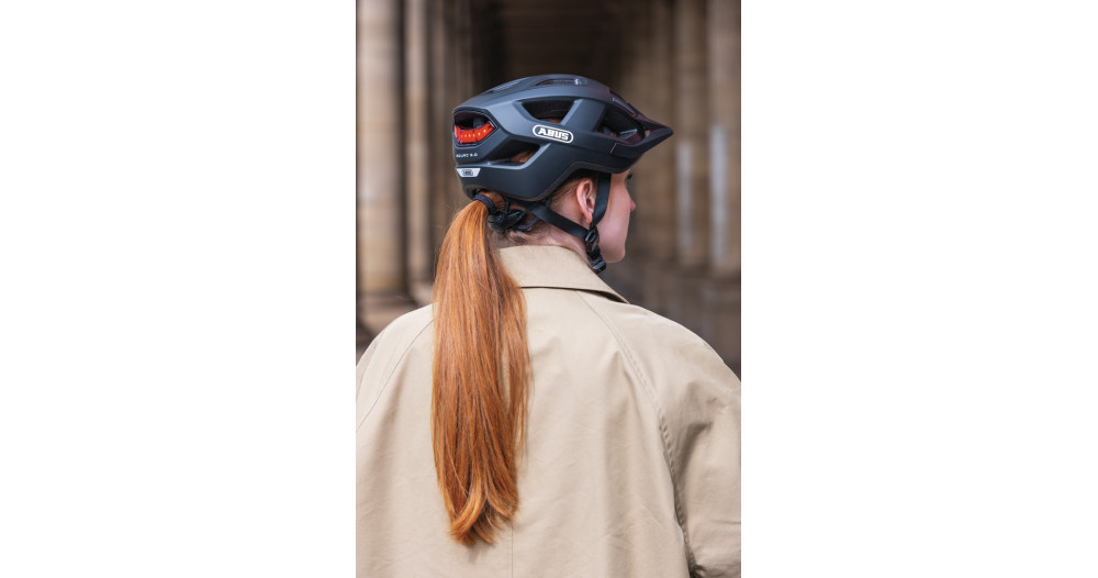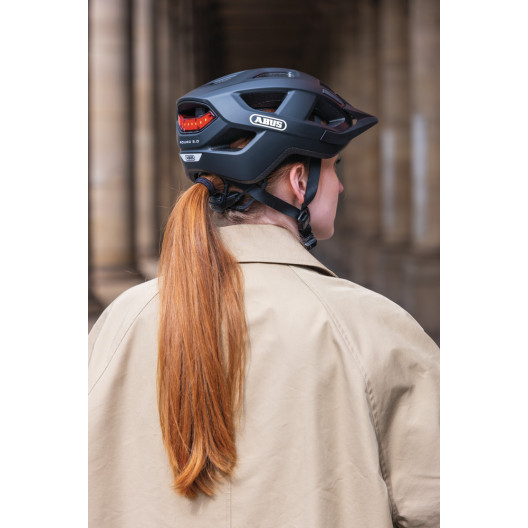 Pour que le casque reste confortable et sûr sur la tête, il s'adapte individuellement à la taille de la tête grâce à une molette de réglage bien en main. Le casque de vélo doit sa stabilité au procédé In-Mold. La mousse dure absorbant les chocs est injectée dans la coque extérieure. Pour une meilleure visibilité, le casque dispose d'une lumière LED.