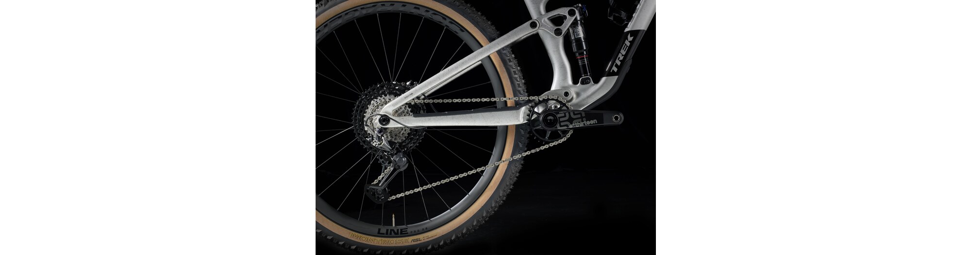 - OCLV Mountain Carbon, espace de rangement interne, tube de direction conique, acheminement interne guidé, protection du tube diagonal, basculeur en alliage, MinoLink à 4 positions, ABP, Boost148, débattement de 120mm