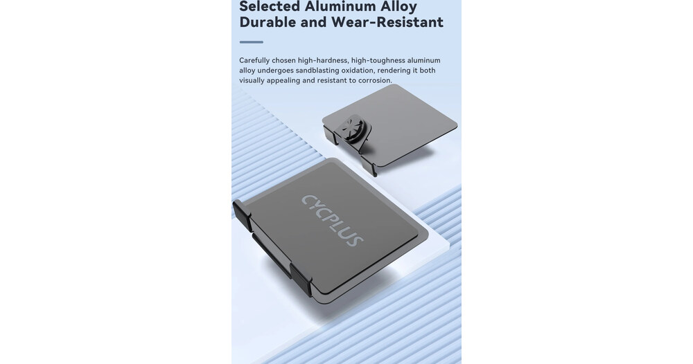 Le CYCPLUS Z7 Indoor Bike Phone/Tablet Holder peut être monté directement sur un support GPS compatible avec Garmin. L'alliage d'aluminium à haute dureté et ténacité est oxydé par sablage, ce qui rend le support à la fois esthétique et résistant à la corrosion.