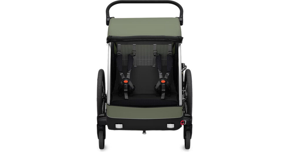 Une excellente remorque vélo et une excellente poussette. Aucun compromis là-dessus. Thule Courier contient 2 roues de poussette et un kit de remorque Thule haut de gamme pour faciliter les déplacements.