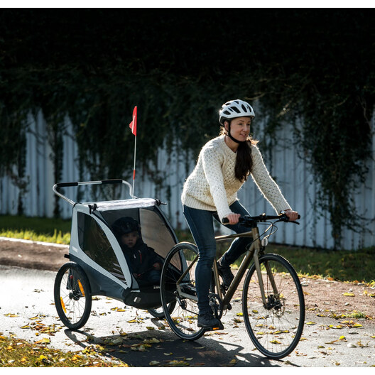 Cette remorque pour vélo comprend un kit marche basique et un kit vélo, un guidon réglable et un compartiment de stockage supplémentaire. Son pliage compact et simple la rendent facile à transporter. Thule Coaster XT utilise le dispositif breveté ezHitch pour se fixer aisément et rapidement au vélo, ce qui en fait la remorque parfaite pour les trajets pressés du quotidien comme pour les longues balades relaxantes