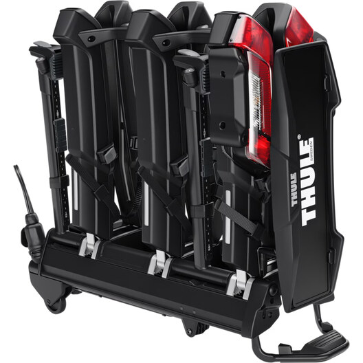 Avec un espacement généreux, une capacité de chargement élevée et un support pour les longs empattements, le Thule Epos ParkSecure garantit que vos vélos voyagent en sécurité. Il est entièrement pliable pour un rangement pratique et inclinable pour un accès au coffre facile – même avec les vélos montés.