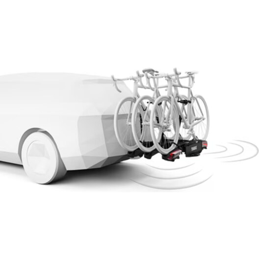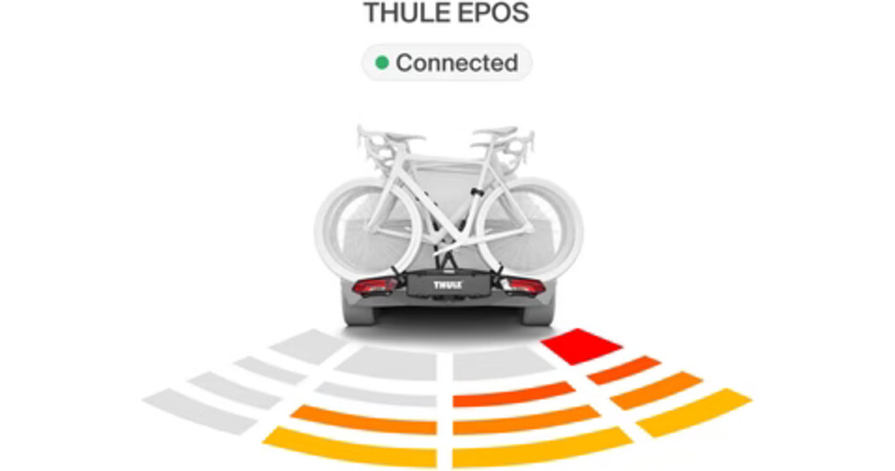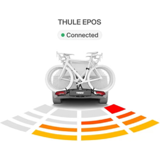 Le Thule Epos ParkSecure est équipé de capteurs de stationnement intégrés qui aident à protéger vos vélos lors des marches arrière. L'unité embarquée fournit des alertes audio et visuelles à l'intérieur de votre voiture, réduisant le risque d'accidents. Le système à quatre capteurs couvre les vélos jusqu'à 1 350 mm d'empattement et des roues de 29", et dispose d'un large champ de vision pour protéger à la fois le porte-vélos et les vélos.