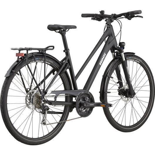 Traverser la ville - c'est plus rapide sur deux roues. Pour aller au travail ou à l'université, puis faire les courses pour le barbecue et, le week-end, aller au bord du lac. Le Campus est aussi flexible que ton quotidien - il est aussi multifonctionnel. Il marque des points grâce à son équipement. Pas de fioritures, mais tout ce qu'il faut pour rouler confortablement sur l'asphalte et les chemins. De la fourche suspendue de haute qualité au porte-bagages, en passant par des gardes-boue, la béquille, des pneus robustes, l'antivol et l'éclairage, tout y est.