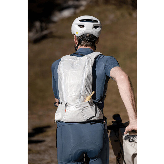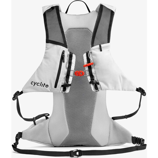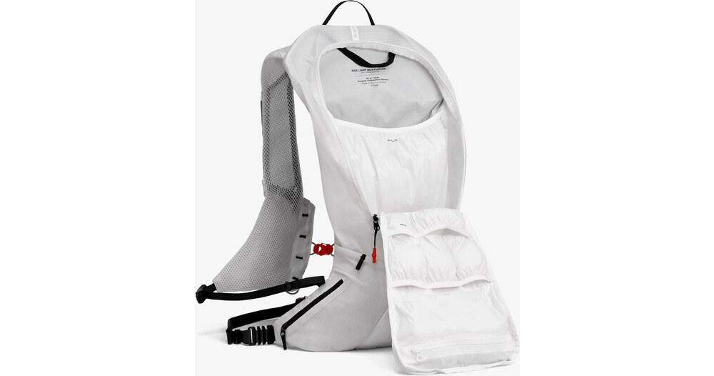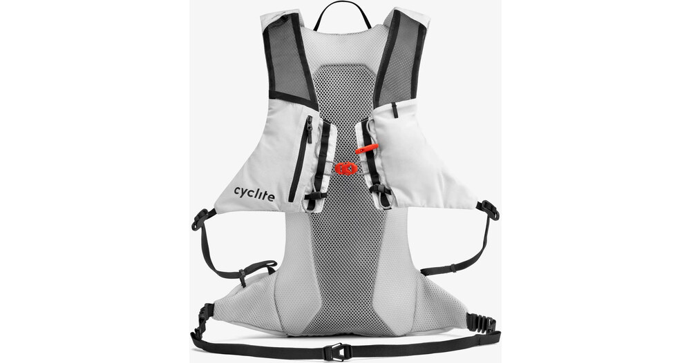 Le compartiment principal du RACE BACKPACK comprend un emplacement pour poche à eau (compatible avec toutes les poches à eau standard jusqu'à 3 litres), une poche zippée avec un crochet pour clés et des compartiments pour les outils et les pièces de rechange. Il offre également quatre poches extérieures élastiques, accessibles même en roulant, de grands éléments réfléchissants, un point de fixation pour un éclairage arrière, une housse de pluie, et les bumpers élastiques dans la ceinture ventrale assurent un maintien parfait et confortable.