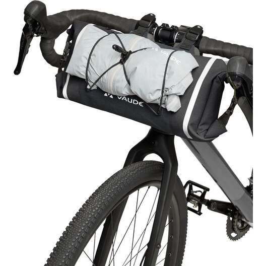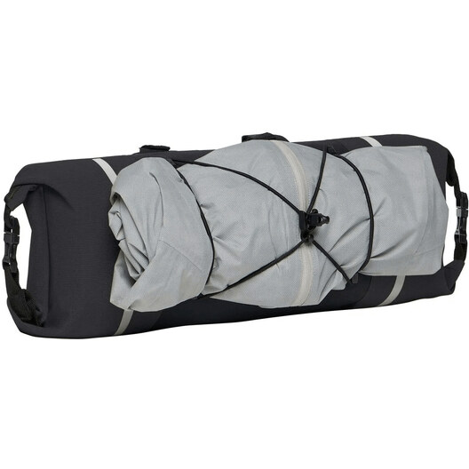 Tout le nécessaire pour une aventure de voyage passionnante en vélo ! La rouleau de guidon Trailfront Compact, léger, étanche par thermosoudage, d'un volume de cinq litres, est accessible des deux côtés et peut être comprimé et fermé de manière étanche grâce à des fermetures par enroulement. Il convient parfaitement aux bagages légers ou à un petit sac de couchage. Les doubles fixations permettent une mise en place rapide et très stable sur le guidon. Tout d'abord, deux bandes de velcro sont passées autour du guidon. Une bande placée au-dessus est passée en sens inverse et fixée par une boucle. Les entretoises fournies permettent de s'adapter à n'importe quelle structure de guidon. La cordelette réglable retient tout ce qui doit être rapidement à portée de main. La sacoche de guidon Trailfront Compact se combine de préférence avec une sacoche de selle pour fixer complètement - sans porte-bagages - le petit bagage du week-end sur le vélo.