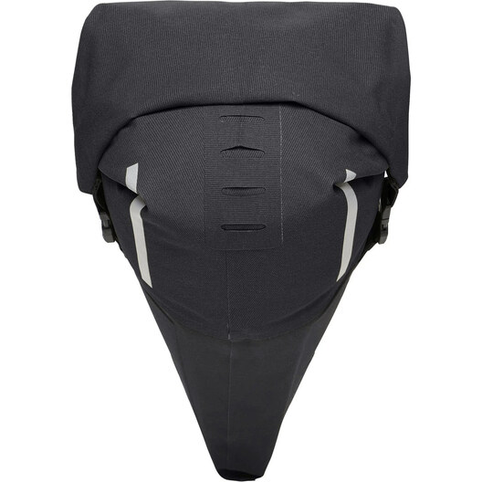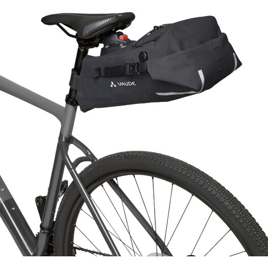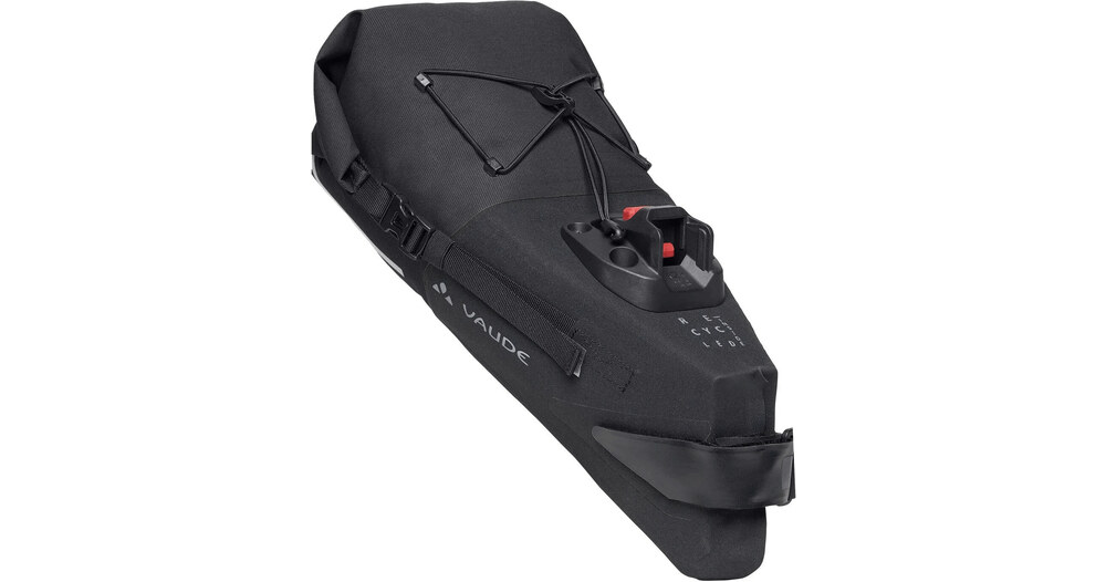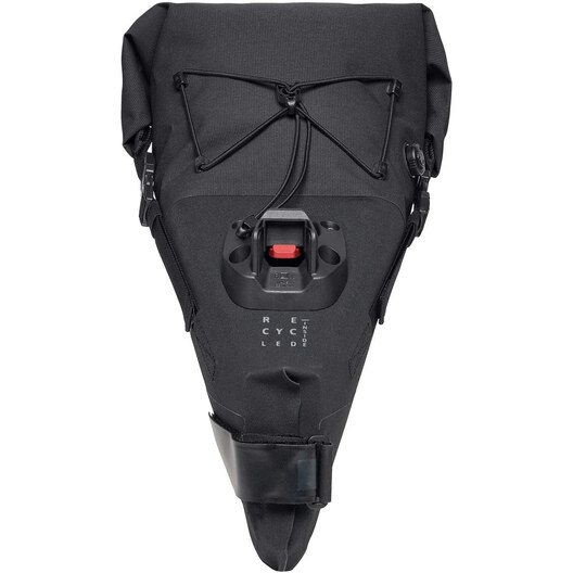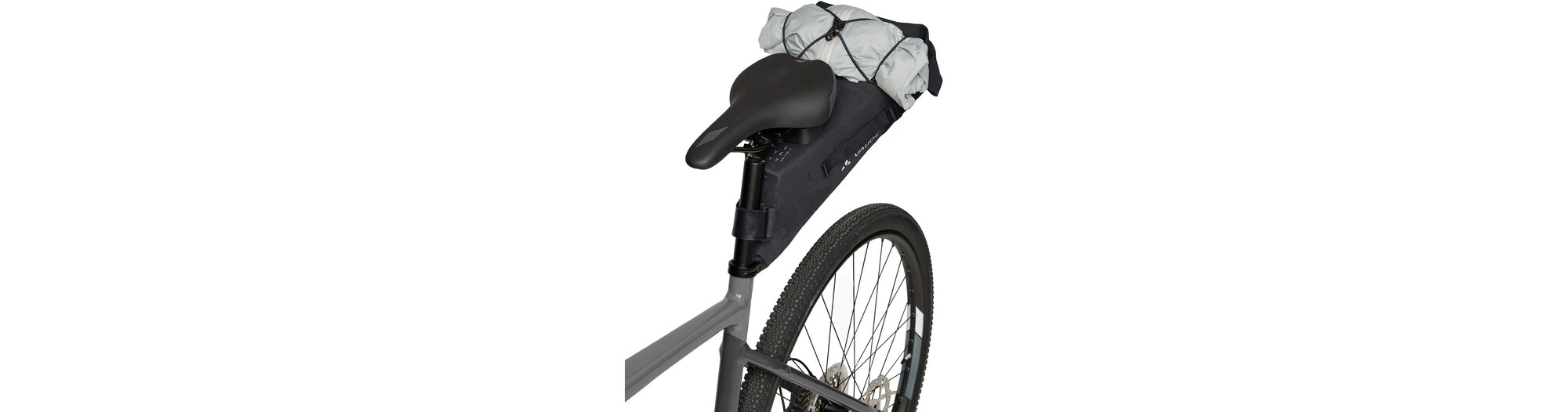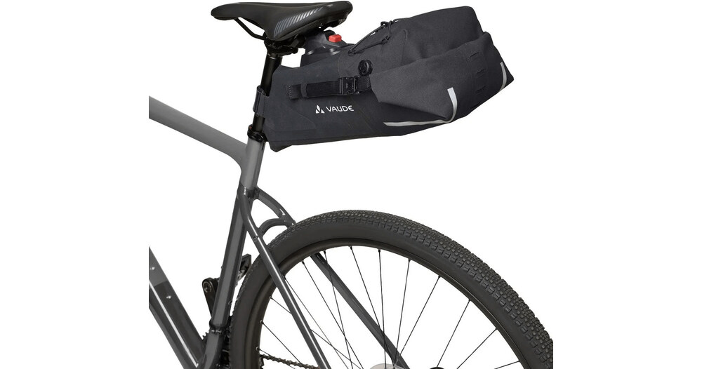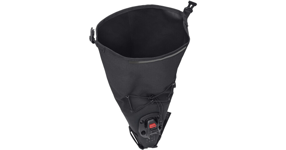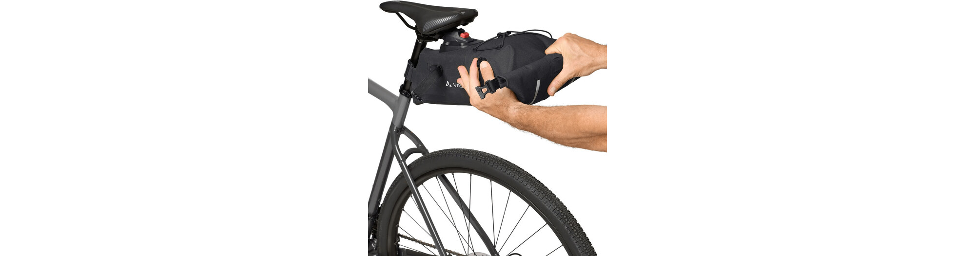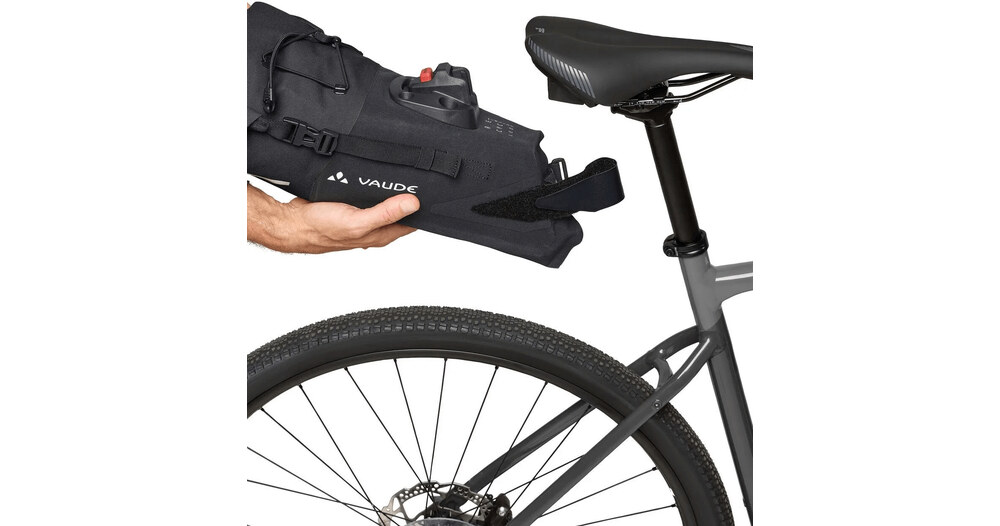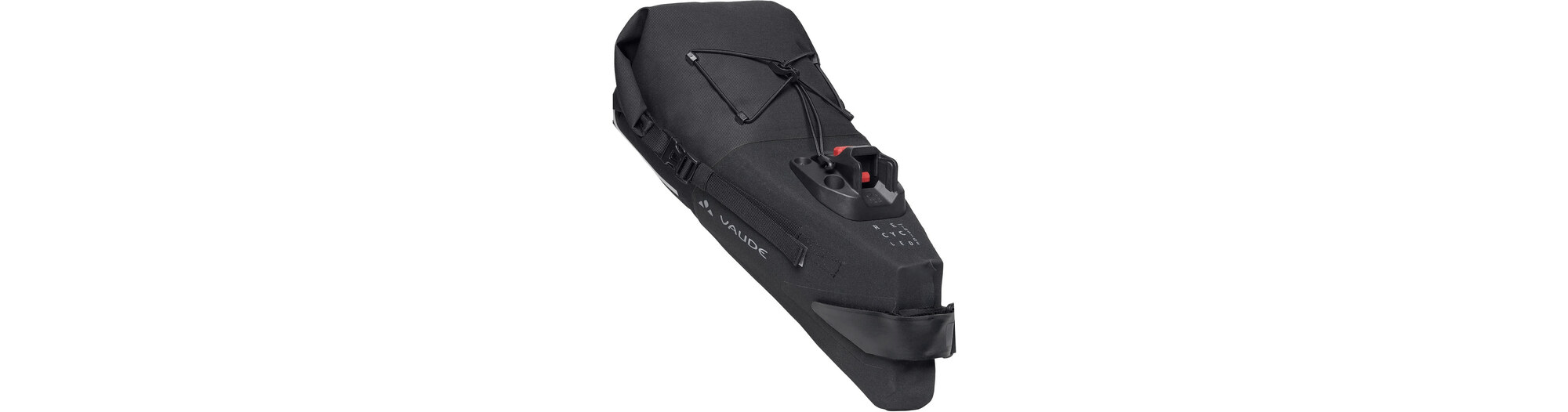 La sacoche de selle Trailsaddle Compact M, compacte et étanche par thermosoudage, peut contenir six litres de matériel pour le bikepacking du week-end. La fermeture par enroulement et la soupape d'évacuation d'air permettent une compression optimale du contenu. Le support de l'attache rapide KLICKfix® se monte sous la selle et assure, via l'adaptateur sur la sacoche de selle, un montage facile et un démontage tout aussi rapide en un seul clic. Une solide bande velcro fixe en outre la sacoche au tube de selle. La cordelette sur le dessus permet de ranger rapidement le coupe-vent ou la veste de pluie. Le Trailsaddle Compact M peut très bien être combiné avec la sacoche de guidon Trailfront Compact pour fixer complètement - sans porte-bagages - le petit bagage du week-end sur le vélo.