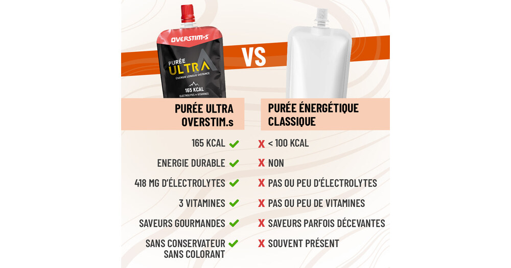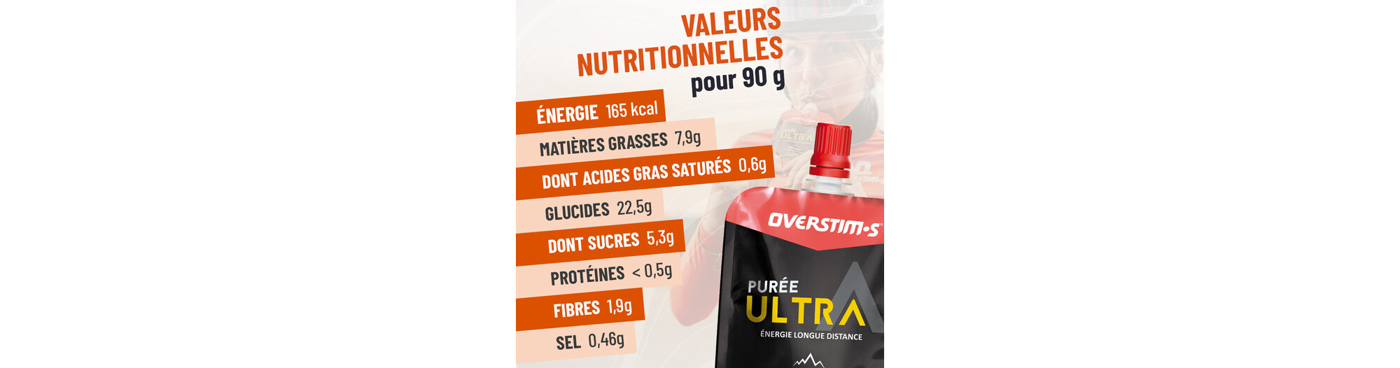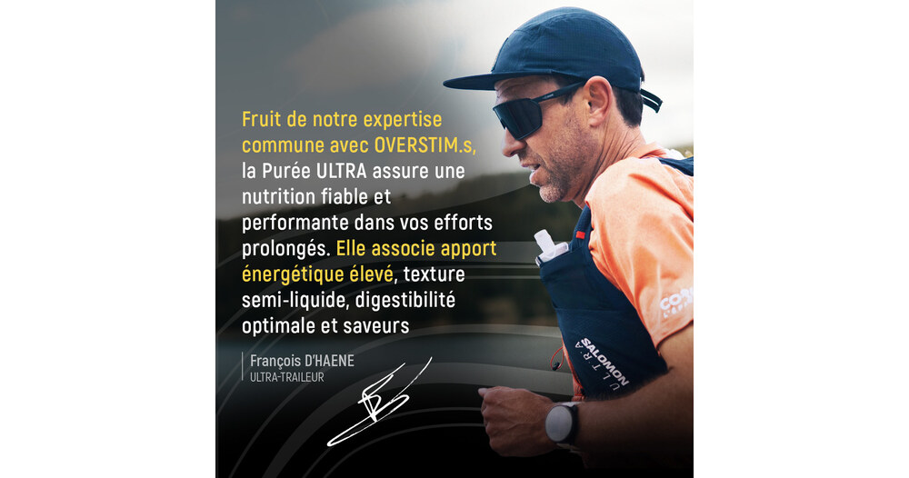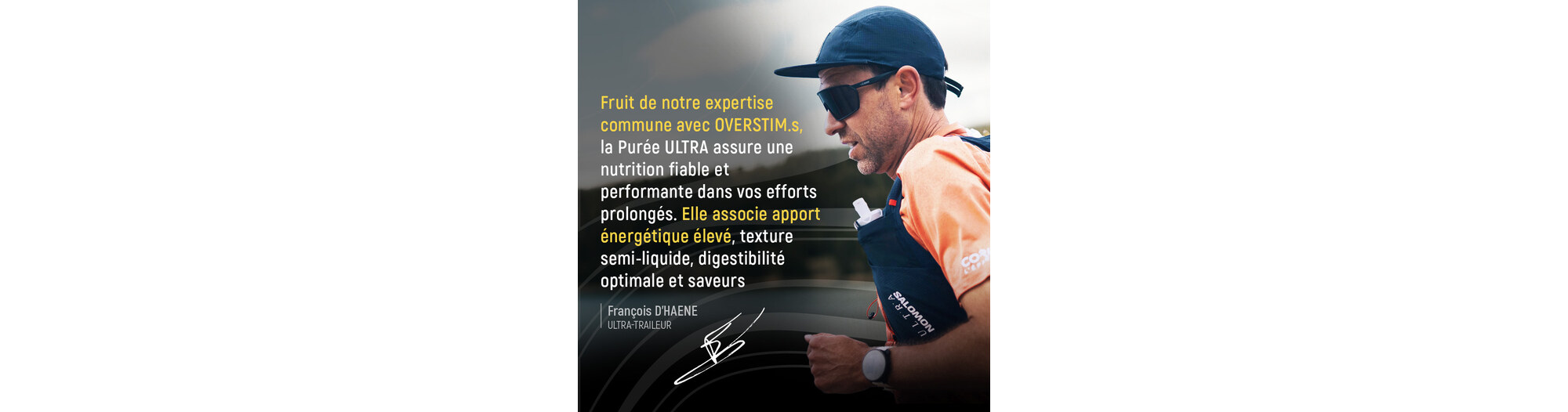 Développée en collaboration avec François d'Haene, référence mondiale du trail, la PURÉE ULTRA OVERSTIM.s vous accompagne lors de vos efforts prolongés (trail, cyclisme, triathlon...) en vous fournissant une énergie durable, sans pics glycémiques ni baisse de régime.