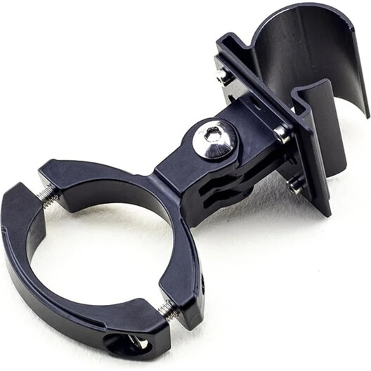 Ce support en aluminium noir permet de fixer sur votre guidon de vélo, tige de selle ou encore un tube de perche votre lampe frontale STOOTS !