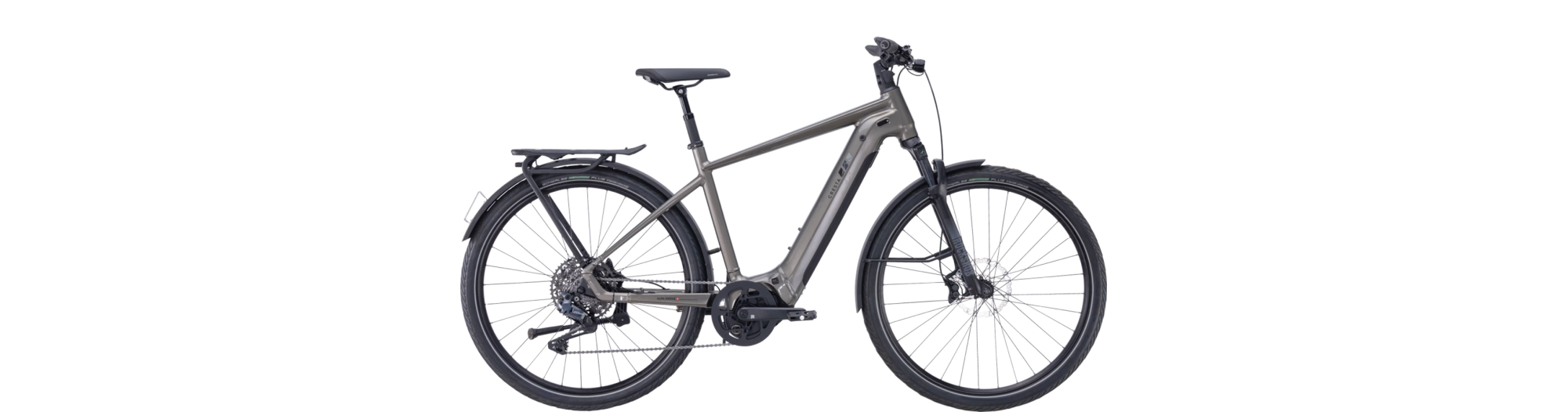 Avec une batterie de 800 Wh, le Cresta eGiro GTi pose de nouveaux jalons en matière d'autonomie. Le moteur Bosch Smart System Speed offre une assistance jusqu'à 45 km/h. Vélo polyvalent et sportif, ce vélo électrique est aussi à l'aise lors de longues randonnées qu'au quotidien ou pour se rendre au travail. La selle en gel assure un grand confort. Les poignées ergonomiques évitent la fatigue des mains. La fourche et la tige de selle sont suspendues, les irrégularités de la chaussée ne se répercutent pas sur les muscles et les os. Les pneus larges offrent une conduite décontractée tout en assurant une grande sécurité. Ils sont plus larges que les rails du tram et roulent simplement dessus. La batterie est entièrement intégrée dans le tube inférieure et se retire facilement pour être rechargée.