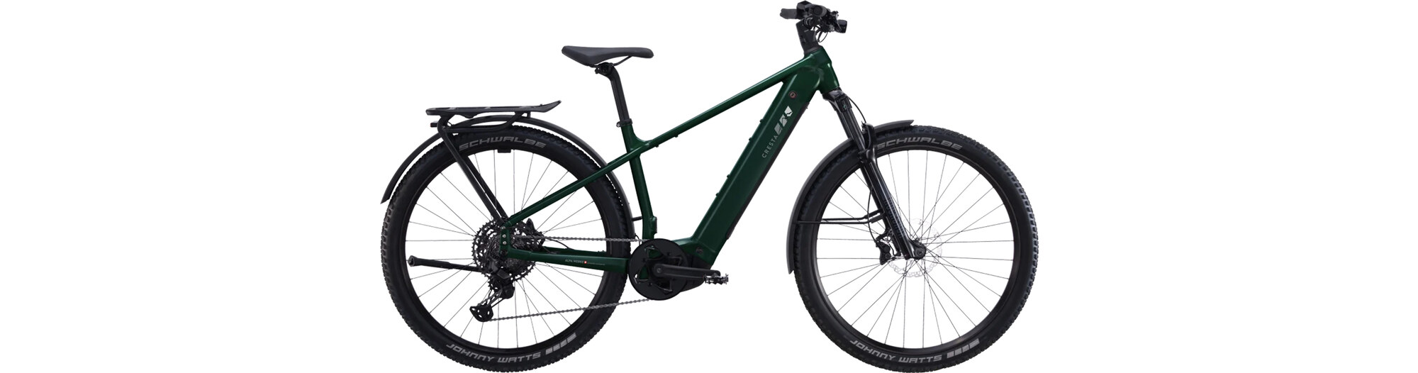 Le Cresta eRoadster GT sportif dispose de la géométrie de cadre et de la maniabilité d'un VTT. Grâce à son centre de gravité bas, il colle à la route et prend ses virages comme accroché à un rail. Le triangle arrière court lui donne de l'agilité - parfait pour les trajets à la fois rapides et décontractés en ville et en tout-terrain. Avec ses garde-boue, son porte-bagages, sa béquille et son système d'éclairage, l'eRoadster GT est fait pour un usage quotidien, par tous temps. Les pneus larges et la fourche suspendue assurent un grand confort. La posture légèrement inclinée est adaptée à la vie quotidienne ainsi qu'à la randonnée.