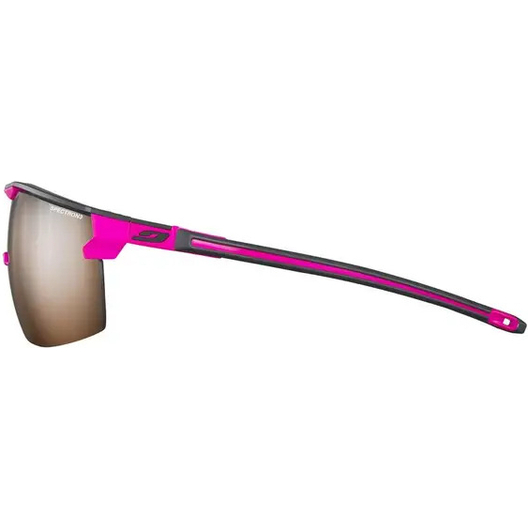 Julbo repousse les limites de la performance avec la silhouette fuselée des lunettes ULTIMATE. Chaque ligne et détails de sa géométrie se mettent au service d’un objectif : vous offrir la plus grande liberté d’action. Les nouvelles branches CustomFIT au réglage précis et inaltérable, couplées à une structure Grip Tech, apportent un maintien personnalisé tout en légèreté. Dotées d’un nez 3D, les lunettes auront une tenue irréprochable en plein effort, avec ou sans casque. Leur look agressif est assuré par l’écran panoramique synonyme de protection et de confort de vision grâce aux verres REACTIV Photochromic. A votre tour de repousser vos limites !